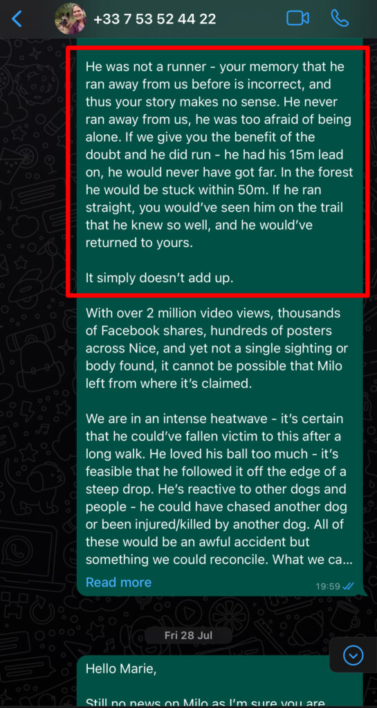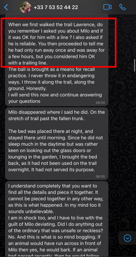 Milo’s owners have invited Marie Nygren to provide evidence that she had the correct insurance and license to offer dog boarding at the time of Milo’s disappearance.