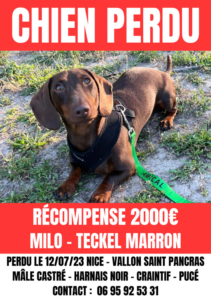 Los habitantes de Niza y alrededores han buscado a Milo por todas partes. Múltiples grupos de búsqueda y perros rastreadores experimentados han recorrido el rastro del que supuestamente desapareció. Se han distribuido cientos de carteles por toda Niza, incluyendo una recompensa de 2000€ por el regreso de Milo. La historia de Milo se ha compartido miles de veces en Facebook e Instagram, y los vídeos de su dueña han llegado a más de 2 millones de personas. Marie Nygren no ha estado presente en ninguna de estas búsquedas.